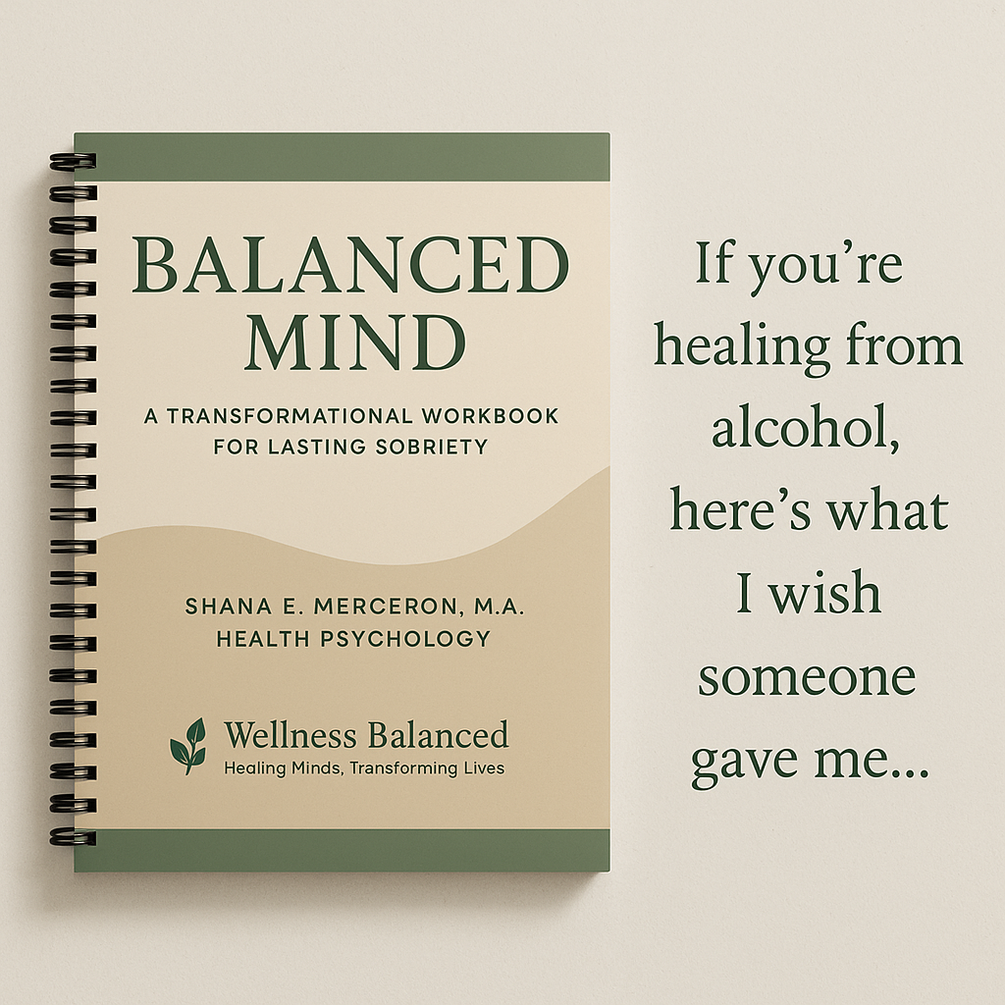 Balanced Mind is your practical and empowering roadmap to lasting sobriety. Designed by Shana E. Merceron, M.A., Health Psychology, this workbook blends science, soul, and structure to help you heal your relationship with alcohol — and with yourself.